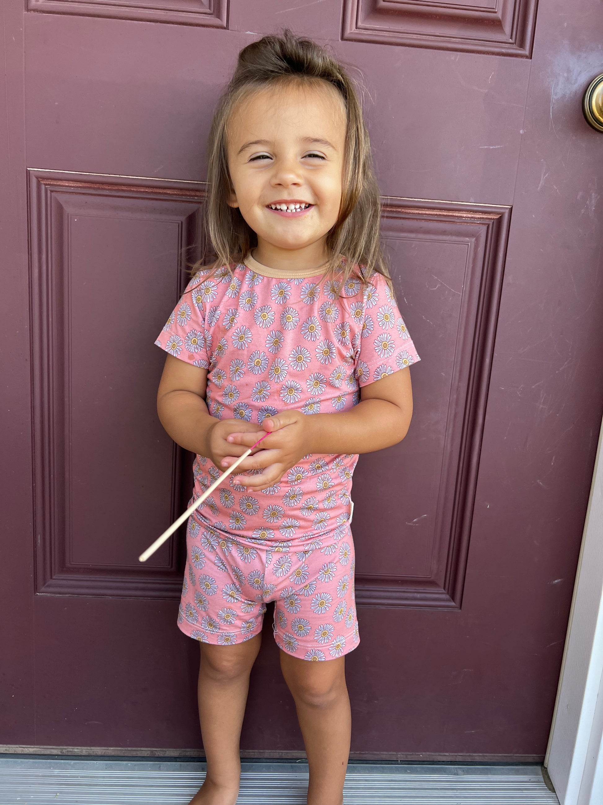 Macie is the sweetest transition from summer into fall! This one comes in 6/12m-2T shorties. 3T-4T short sets. Made from 210 gsm bamboo, these are ready to ship.